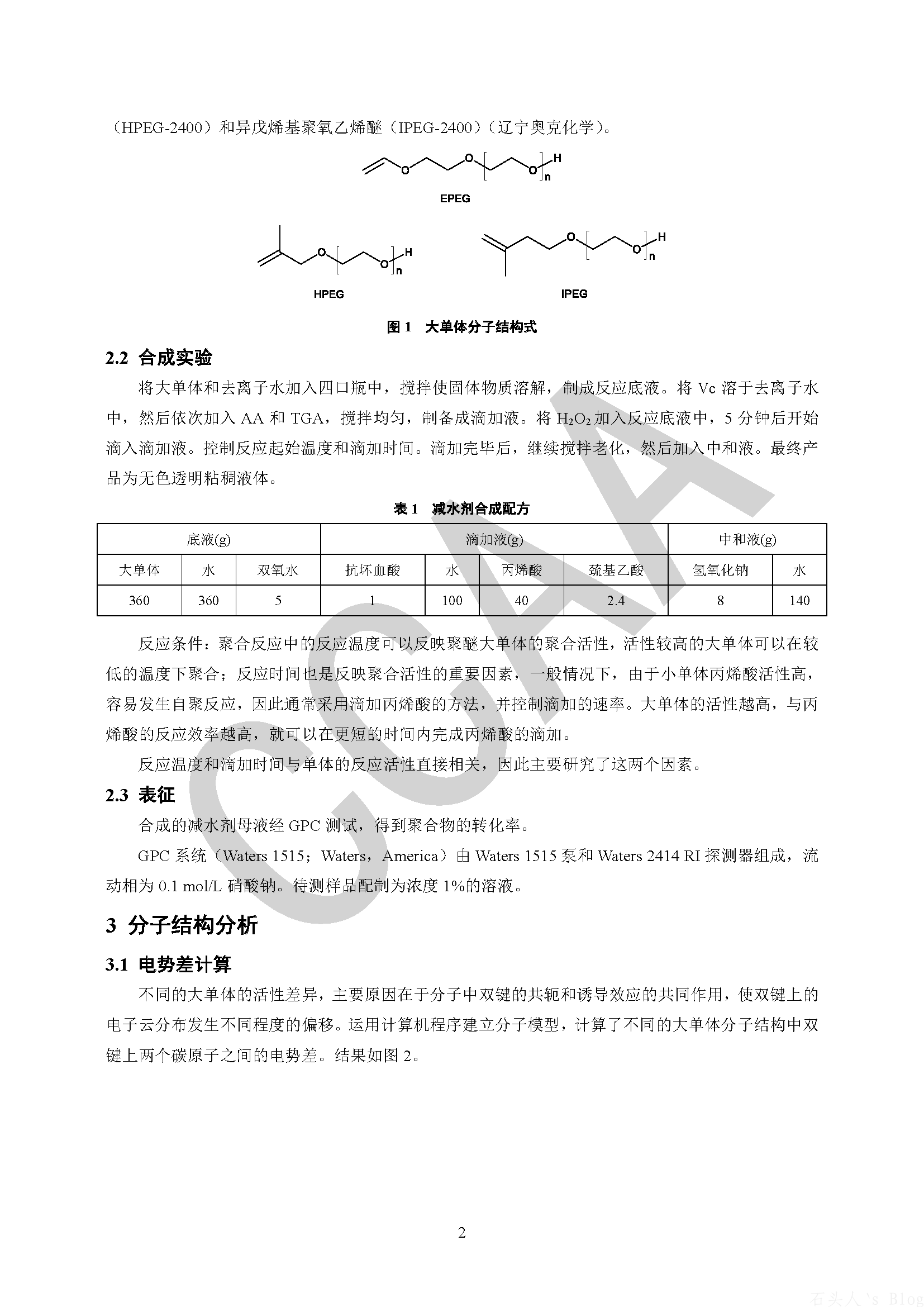 • 08-15乙二醇单乙烯基聚氧乙烯醚(EPEG)大单体结构特征与聚合活性分析