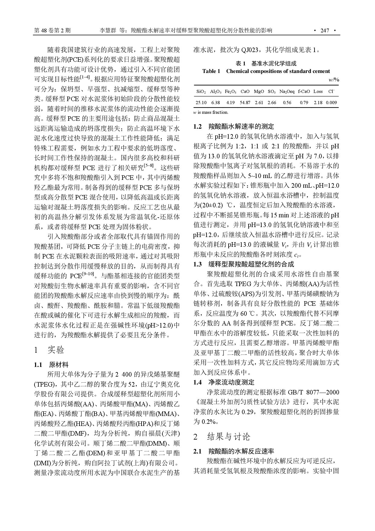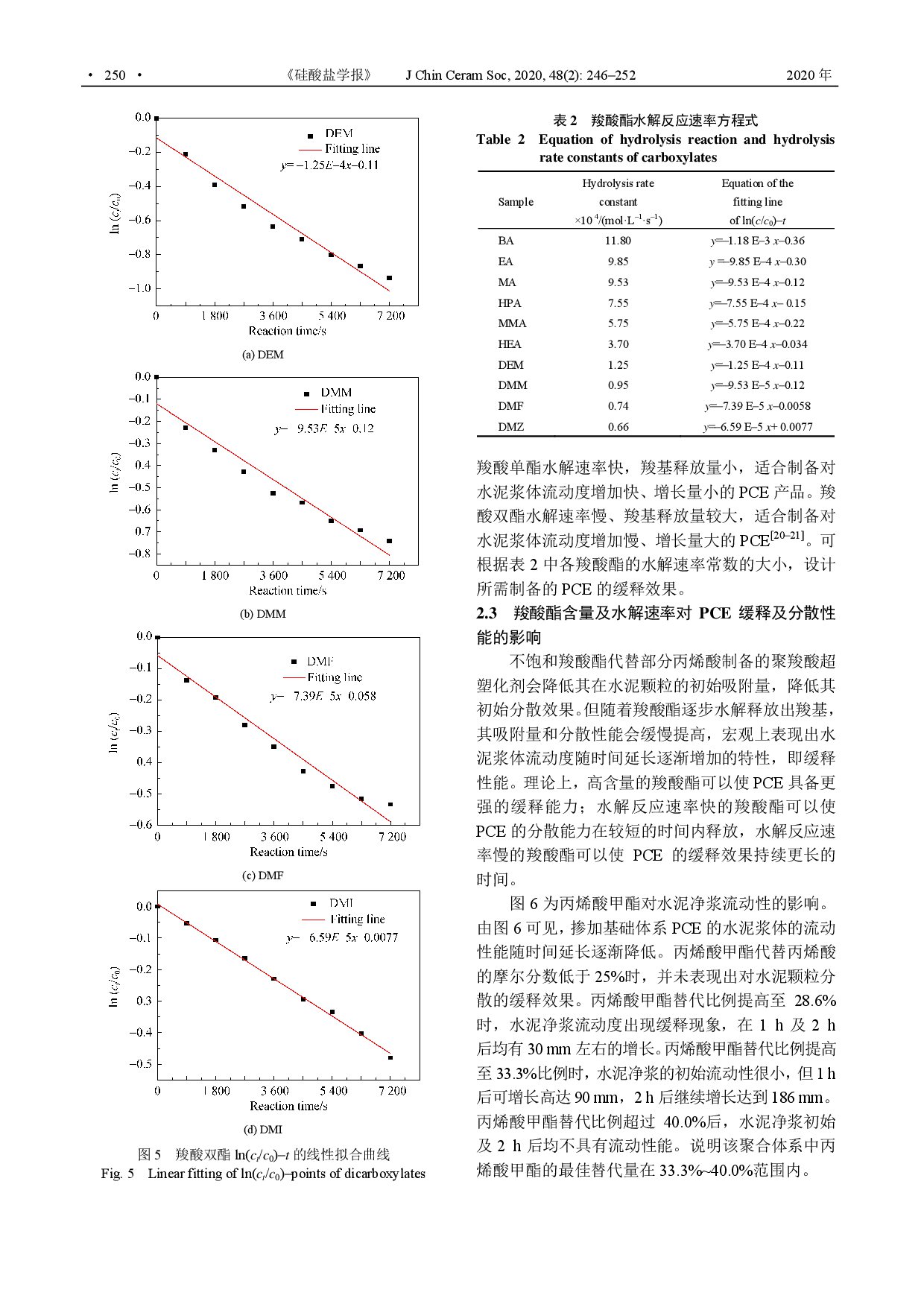 羧酸酯水解速率对缓释型聚羧酸超塑化剂分散性能的影响
